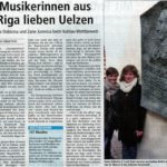Natürlich hatten wir vor, bei der Gelegenheit „unsere“ Kuhlau-Mädchen wiederzusehen – zumal wir uns schon vorher in der Liste der Gastgeber für den Kuhlau-Wettbewerb in diesem Jahr eingetragen hatten. Es stand auch schon fest, wer unsere Gäste sein würden: Liene und Zane! Außerdem eine dritte junge Frau, die die beiden Flötenspielerinnen am Piano begleiten würde: Zane Rubesa, kurzerhand Zane 2 genannt. Die Chance zum Wiedersehen ergab sich dann am Mittwoch unserer Riga-Woche: An dem Tag gaben Liene, Zane 1 und Zane 2 ein Konzert in demm rund 70 Kilometer südlich von Riga gelegenen Bauska. Wir fuhren hin und wurden nicht enttäuscht – es war trotz eines Kuhlau nicht gerecht werdenden E-Klaviers ein wunderschönes Konzert – unter anderem mit Stücken von Friedrich Kuhlau. Es war für die drei sozusagen eine Generalprobe für „Kuhlau in Uelzen“. Noch in der Nacht setzte ich mich in Riga an mein Laptop und schrieb einen kleinen Text darüber. Zusammen mit ein paar Fotos sandte ich den dann an mein Heimatblatt. Norman Reuter, mein „Betreuer“ bei der AZ, ergänzte meine Ausführungen recht gekon