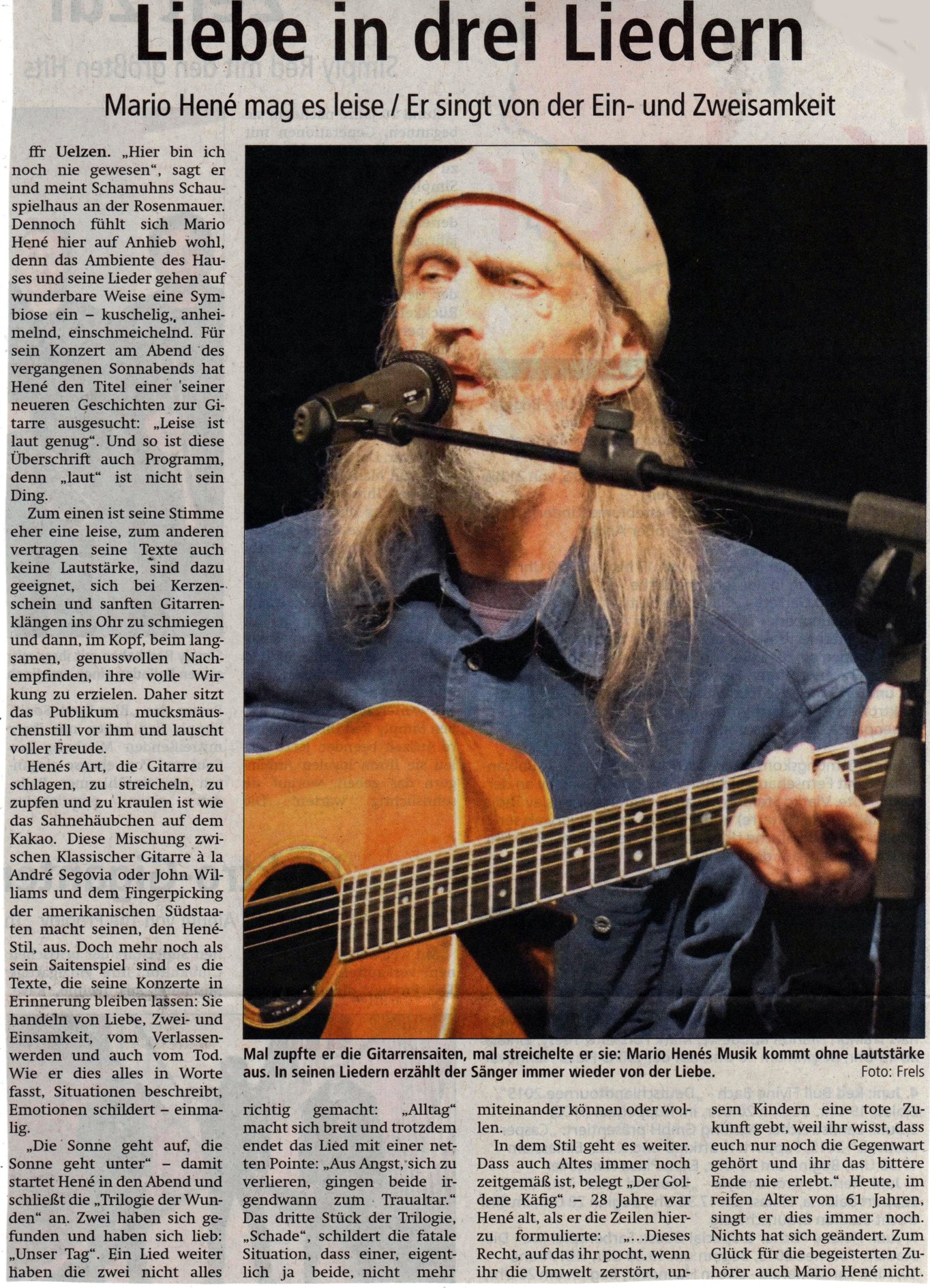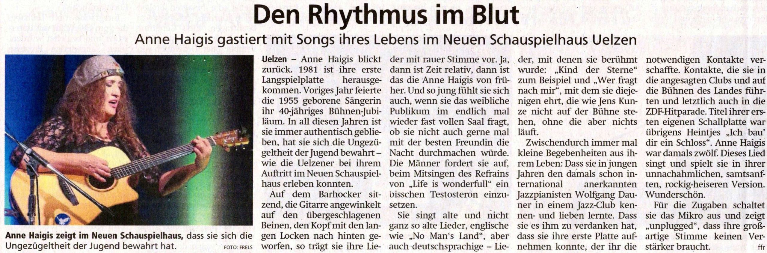 Ich abeite noch daran, die Jahre 2016, 2015, 2014 und 2013 zu erfassen – bis hin zu meinem ersten Text, den ich auf meinem Weg „Zurück-zu-den-Wurzeln“ über die „Silver Beatles“ in Uelzen geschrieben habe. Er stand am 19. Februar 2013 im Blatt:
